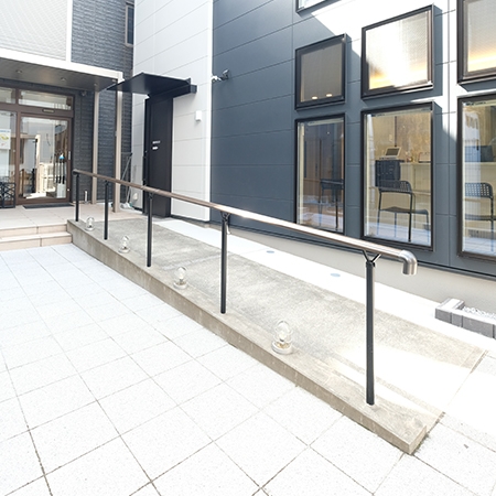 車いすの方は歯科医院側のスロープからお入りいただけます。